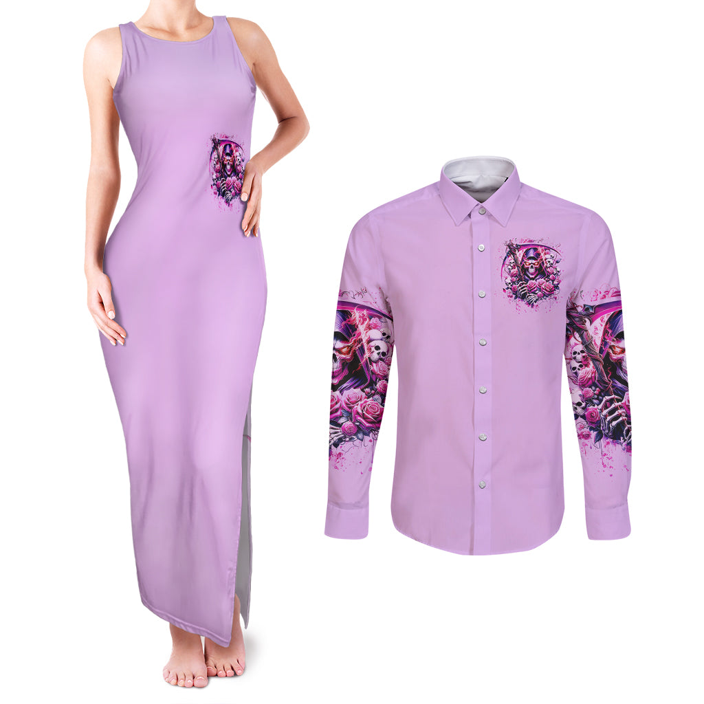 Reaper Skull Couples Matching Tank Maxi Dress and Long Sleeve Button Shirt Warning This Tattooed Girl Doesn't Play Well With Stupid People