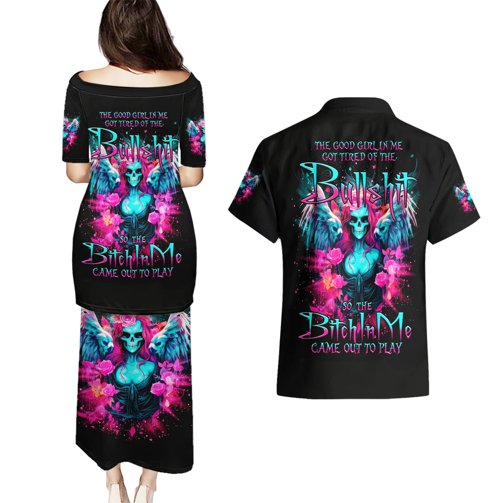 Witch Skull Couples Matching Puletasi and Hawaiian Shirt The Good Girl In Me Got Tired Of The Bullshit